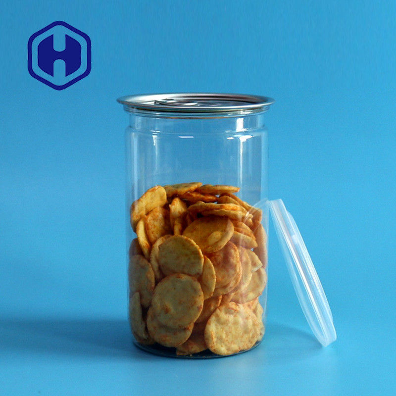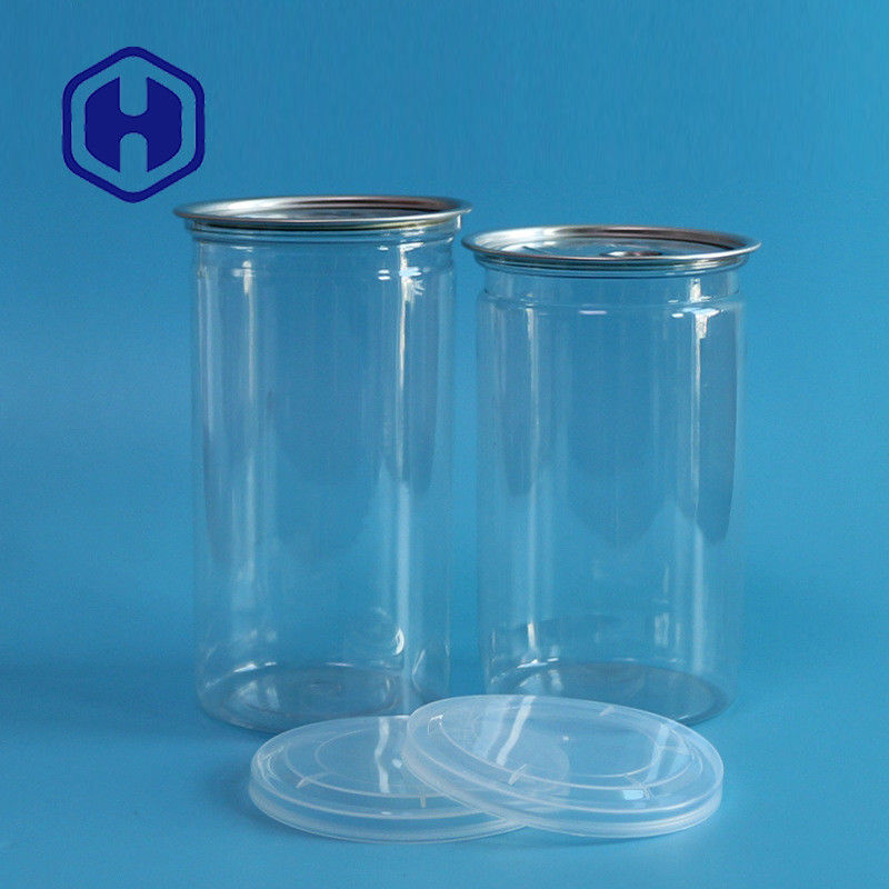 প্রিন্ট লোগো 680ml ফাঁকা গোলাকার স্বচ্ছ ফুড গ্রেড PET মশলা প্লাস্টিক ক্যানিং ক্যান
