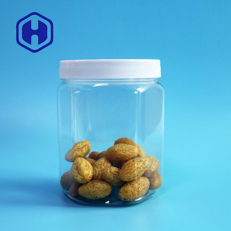 সস্তা 630ml হেক্সাগোনাল ট্রান্সপারেন্ট ওয়াইড মাউথ বিস্কুট প্লাস্টিক PET জার পাইকারি