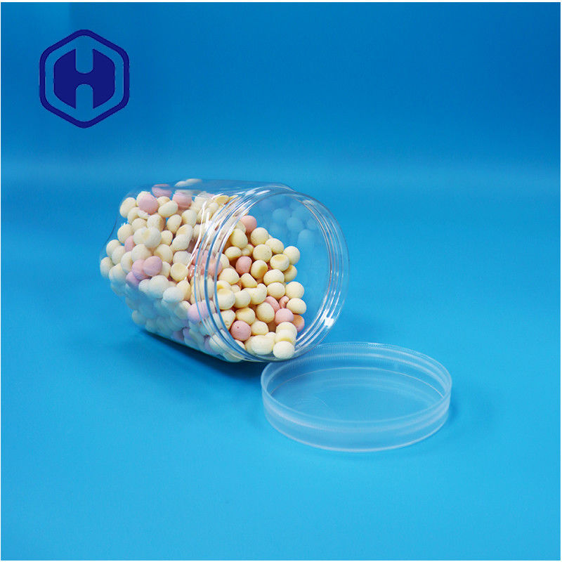 ক্লিয়ার স্কয়ার পিইটি প্লাস্টিক ফুড গ্রেড চিনি মিষ্টি কুকিজ জার স্ক্রু ঢাকনা বৈশিষ্ট্যযুক্ত