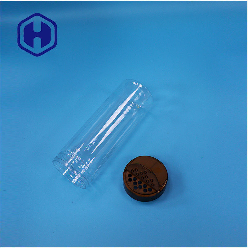 স্বচ্ছ প্লাস্টিক পিইটি বৃত্তাকার প্রশস্ত মুখ লবণ মরিচ মশলা জার সিফটার এবং ক্যাপ