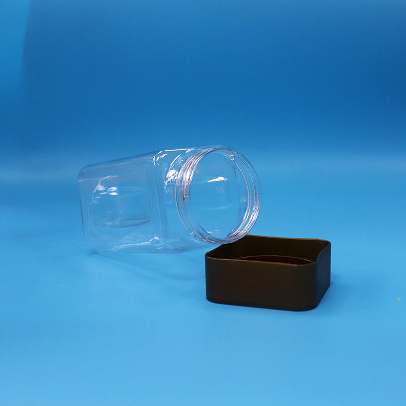 1. স্পষ্ট পিইটি বর্গাকার প্লাস্টিকের জার পাইকারি--দ্বৈত সিলিং অপশন সহ