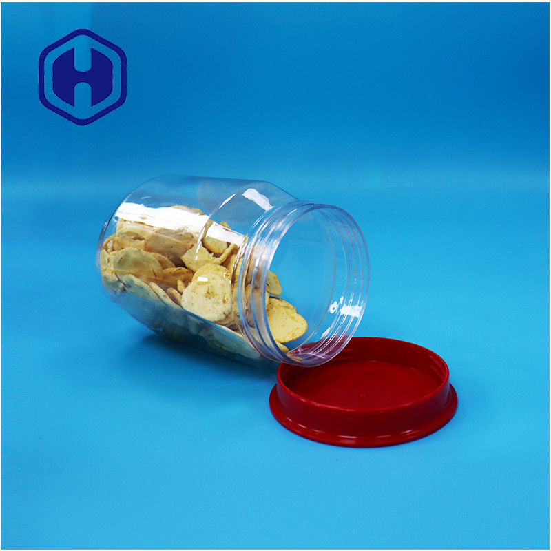 স্বচ্ছ হেক্সাগন অনন্য আকৃতির প্লাস্টিকের বাদাম মিষ্টি শুকনো খাদ্য জার স্ক্রু শীর্ষ ঢাকনা