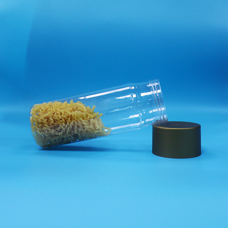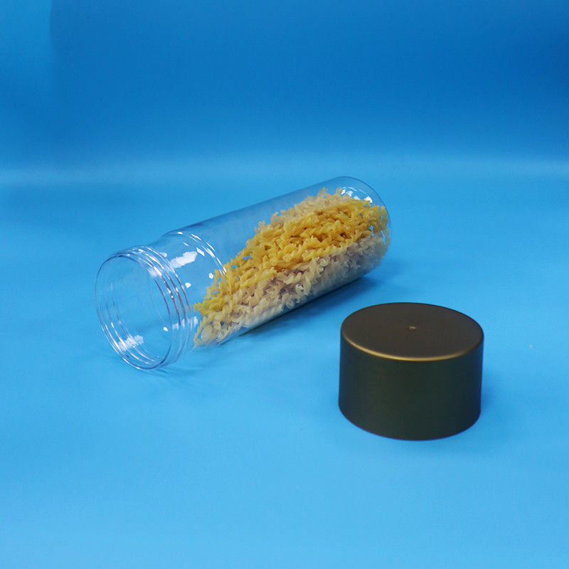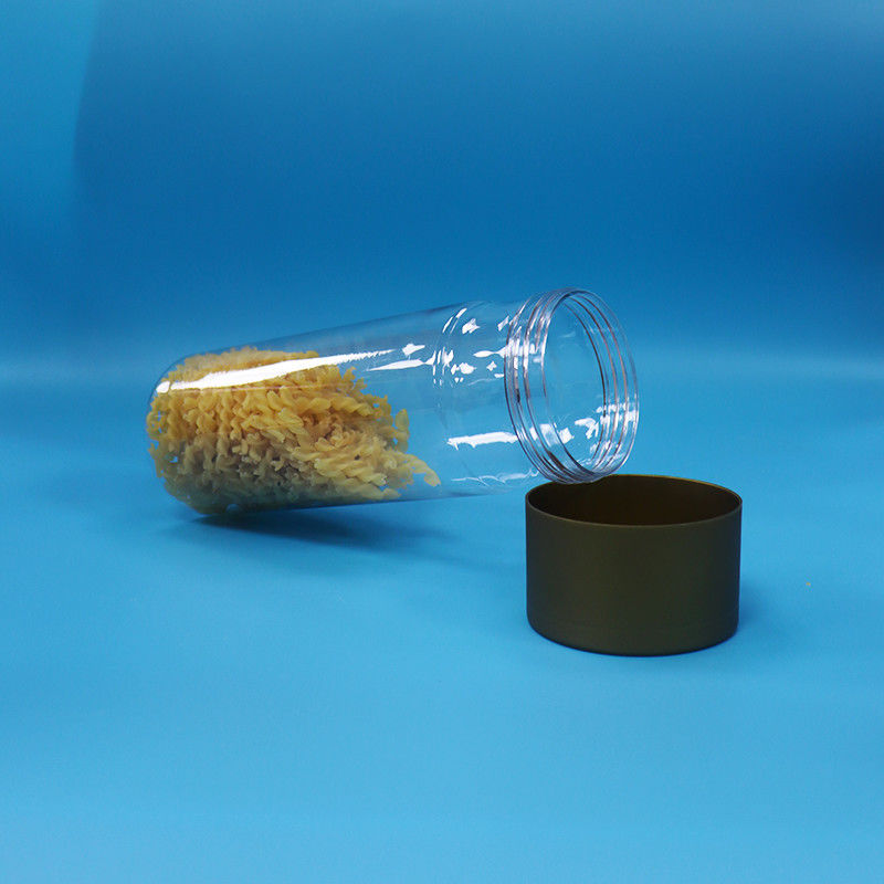 স্বচ্ছ পিইটি প্লাস্টিকের কুকিজ বাদাম ক্যান্ডি লম্বা সিলিন্ডার বৃত্তাকার জার স্ক্রু ক্যাপ