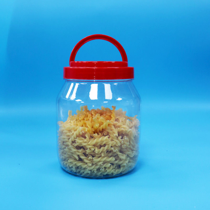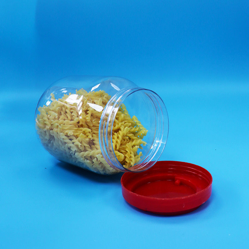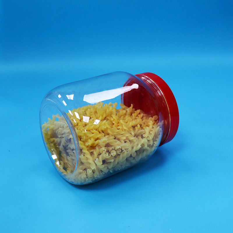 ক্যান্ডি কুকি ওয়াইড মুখ পিইটি ফুড গ্রেড স্বচ্ছ সিলিন্ডারিক জার স্ক্রু লাল ঢাকনা