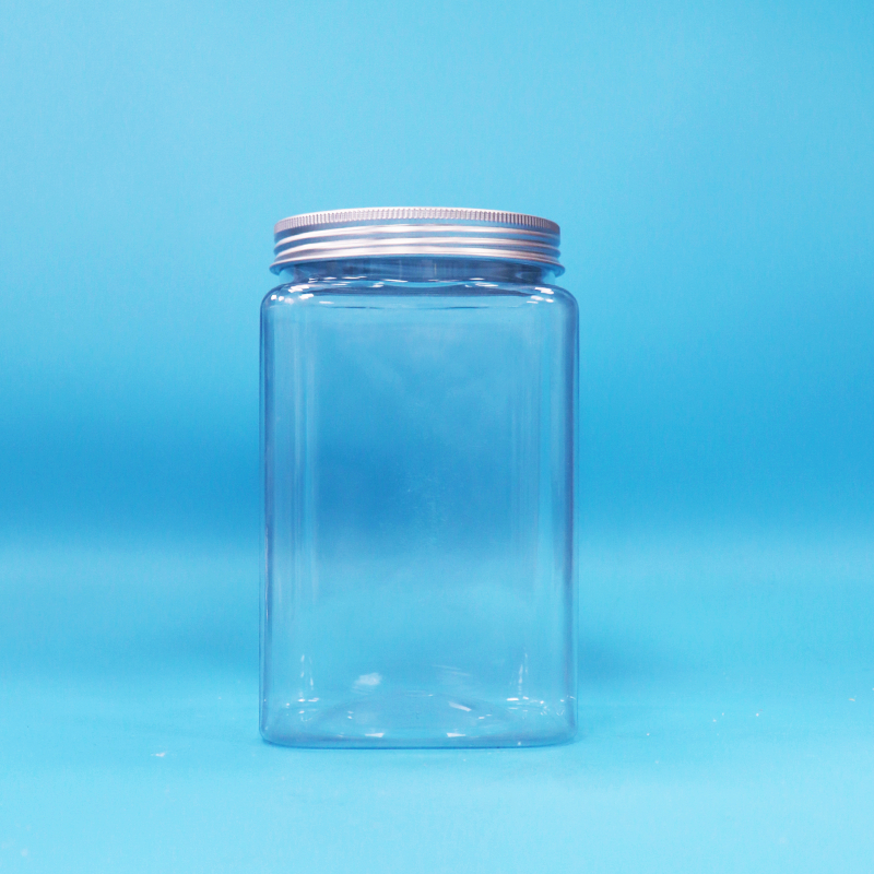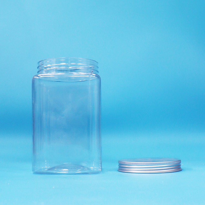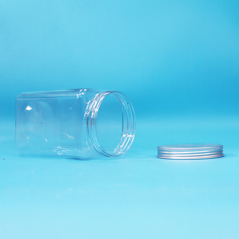 বিপিএ মুক্ত বর্গাকার স্বচ্ছ পিইটি প্লাস্টিক নুডলস ক্যান্ডি জার এবং স্ক্রু অ্যালুমিনিয়াম ক্যাপ