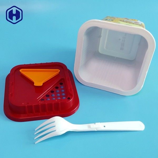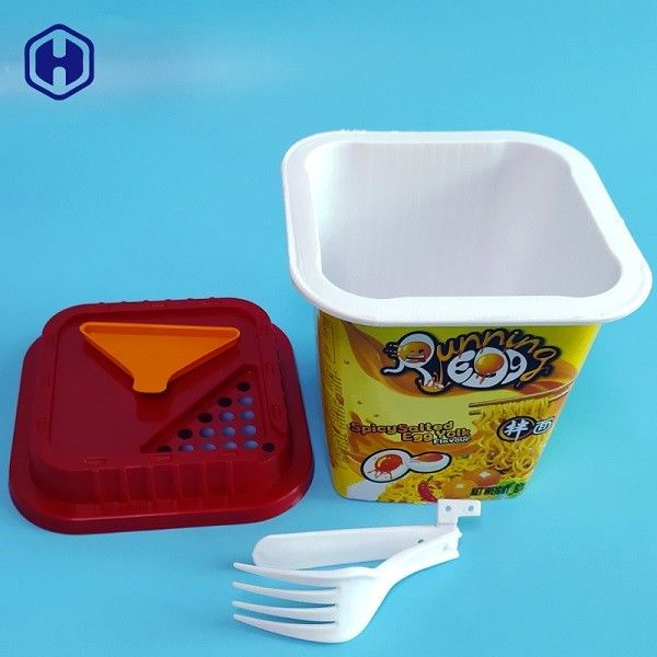 আইএমএল স্কোয়ার প্লাস্টিকের পাত্রে olesাকনা সহ খালি খালি নুডল কাপ তাত্ক্ষণিক খাবারের বাটি