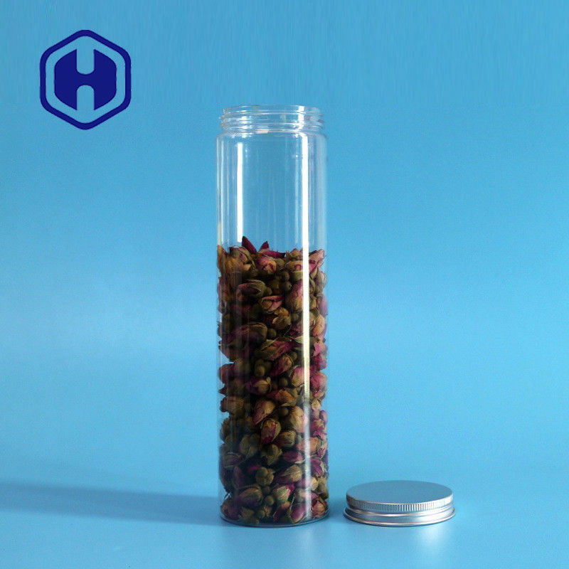 অ্যালুমিনিয়াম ঢাকনা সহ প্রিমিয়াম 420ml লম্বা প্যাকেজিং বার বিস্কুট গোলাকার পিইটি প্লাস্টিকের জার