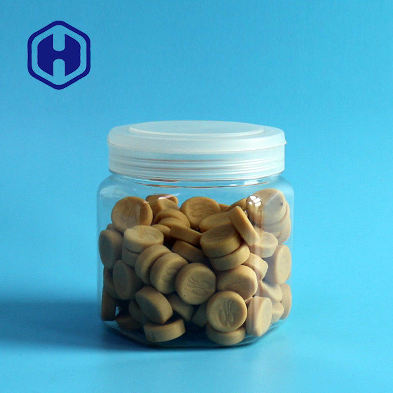 কাস্টম প্যাকিং বিপিএ ফ্রি খালি ওয়াইড মাউথ 87 মিমি ফ্লিপ টপ হেক্সাগন প্লাস্টিক ক্যান্ডি জার