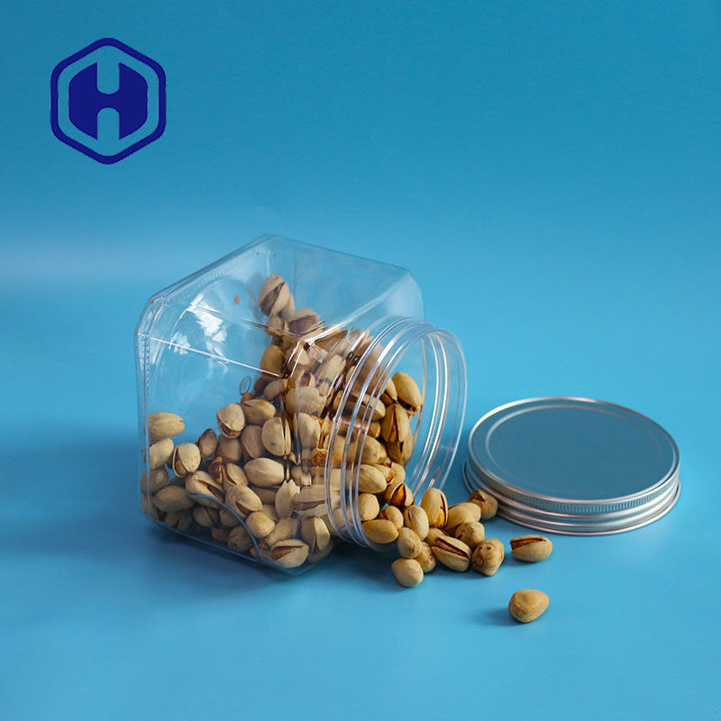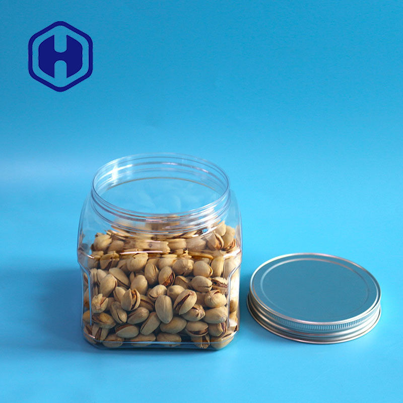 Bpa ফ্রি স্টোরেজ 1000ml শর্ট গ্রিপ প্লাস্টিক PET ফুড স্কয়ার জার সঙ্গে অ্যালুমিনিয়াম ঢাকনা