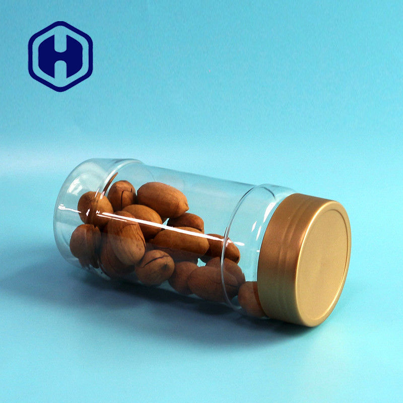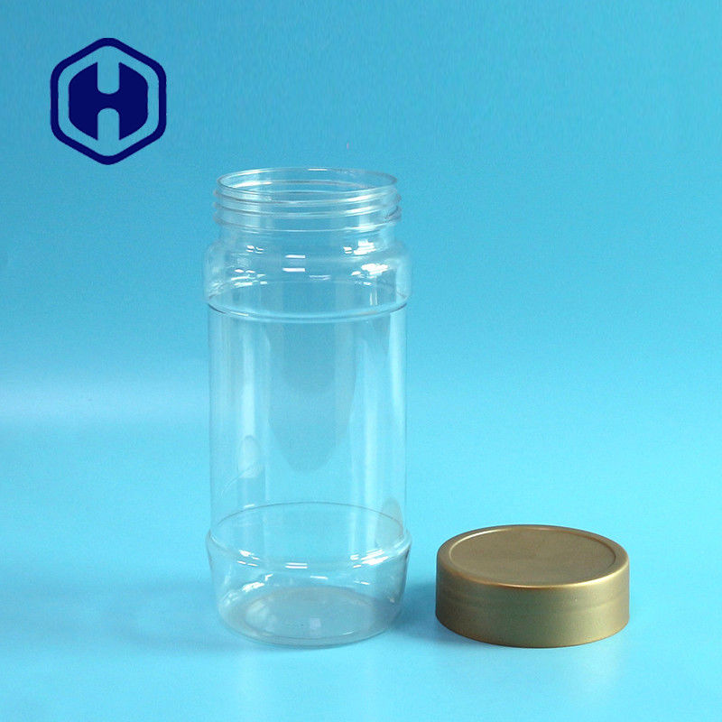উপহার প্যাকেজিং গোল্ড স্ক্রু টপ রাউন্ড স্ন্যাকস কফি বিন স্বচ্ছ 1000 মিলি পিইটি জার