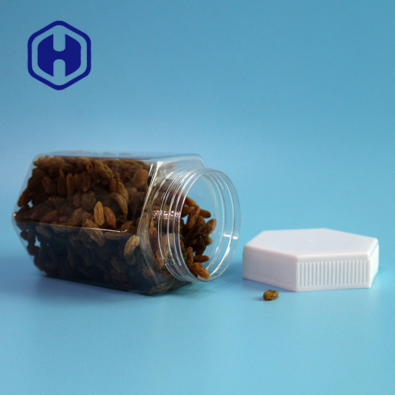 হেক্সাগোনাল 23oz 680ml বাদাম Bpa ফ্রি ফুড গ্রেড প্লাস্টিক PET জার স্ক্রু ঢাকনা সহ