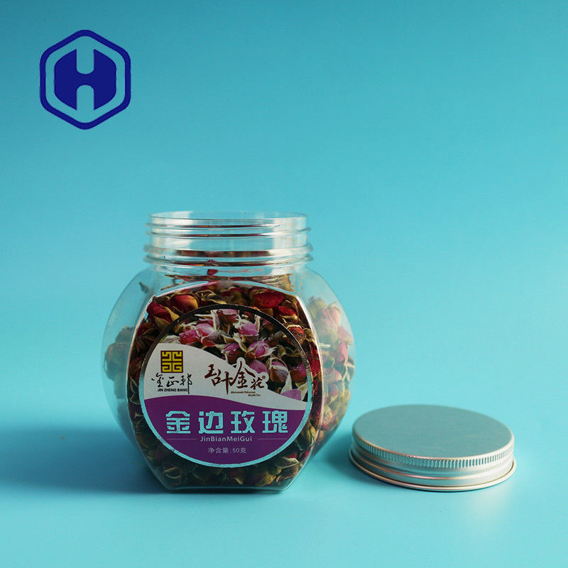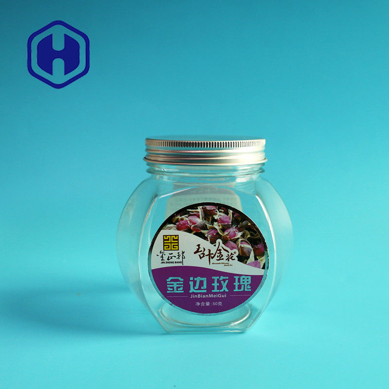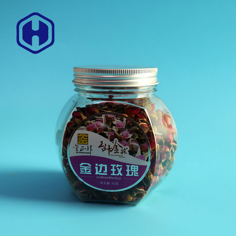 অ্যালুমিনিয়াম কভার সহ বিশেষ সুগন্ধযুক্ত শুকনো ফুল বাদাম খাদ্য প্যাকেজিং PET প্লাস্টিক জার