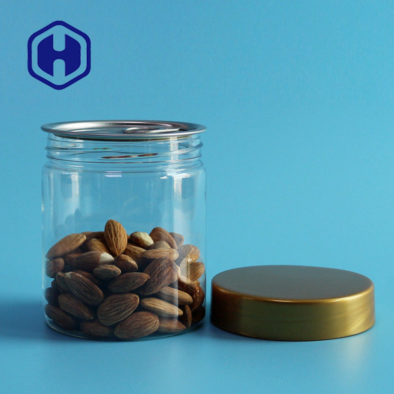 300# 380ml শুকনো ঝাঁকুনি ফল খালি স্বচ্ছ পিইটি প্লাস্টিক ক্যান স্ক্রু ঢাকনা দিয়ে