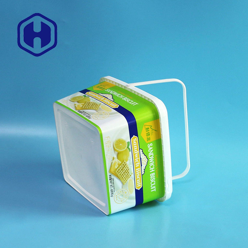 ইকো বন্ধুত্বপূর্ণ একক কাস্টম টেকসই বর্গক্ষেত্র 2L প্লাস্টিক cracker বিস্কুট IML কনটেইনার প্যাকেজিং বক্স