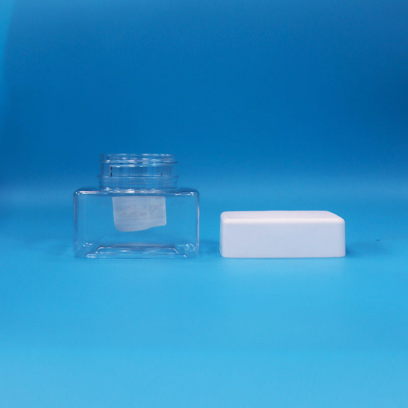 ছোট খালি স্ন্যাকস ফুড স্বচ্ছ বর্গাকার ক্যান্ডি বাদাম পিইটি প্লাস্টিকের জার স্ক্রু ঢাকনা