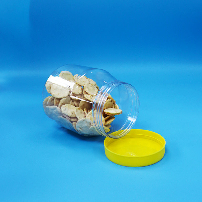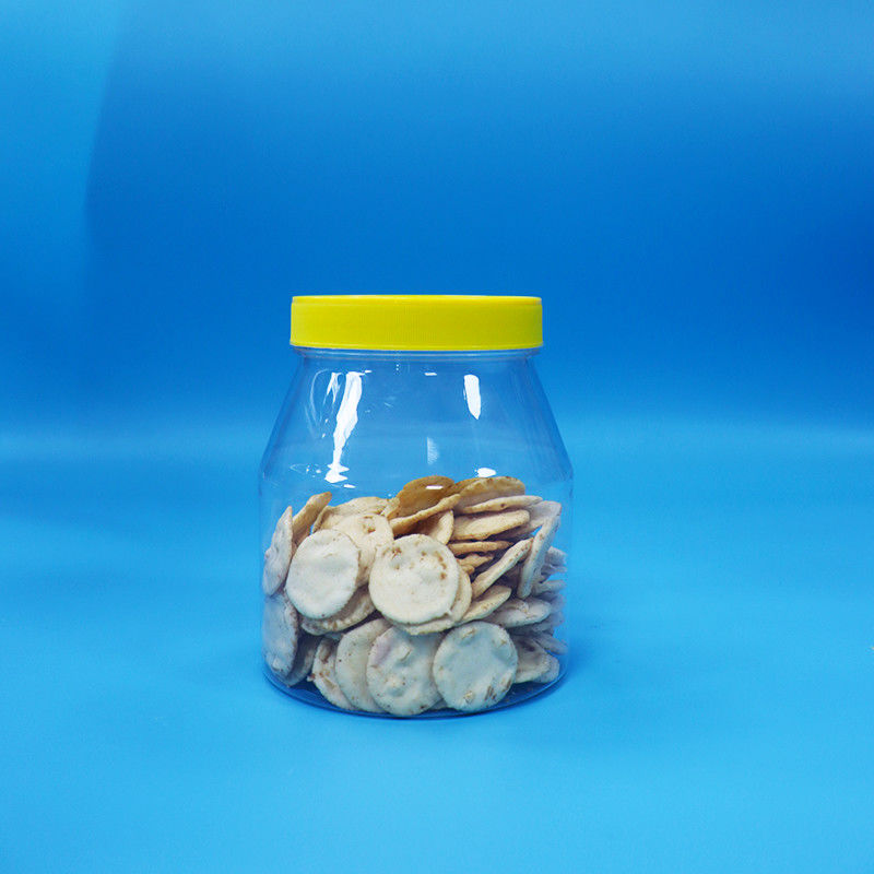 বড় প্রশস্ত মুখ 900ml স্বচ্ছ কুকি মিষ্টি চিনি পিইটি প্লাস্টিকের জার স্ক্রু ঢাকনা