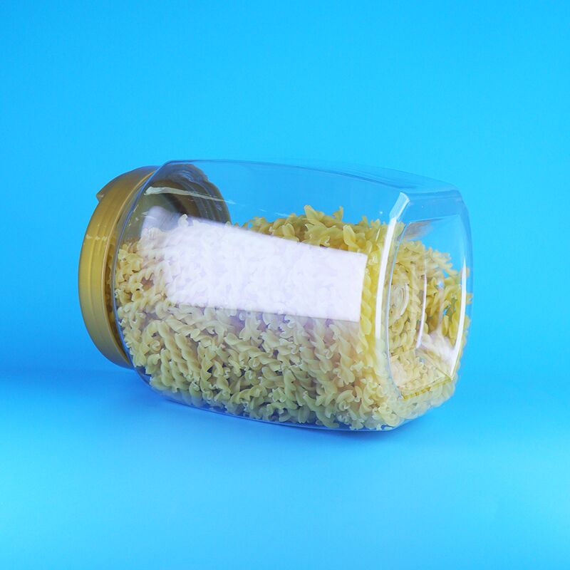 স্বচ্ছ বর্গাকার হ্যান্ডেল ফ্ল্যাট ঢাকনা প্লাস্টিক পিইটি ক্যান্ডি কুকিজ শুকনো খাবার বেবি ফুড জার